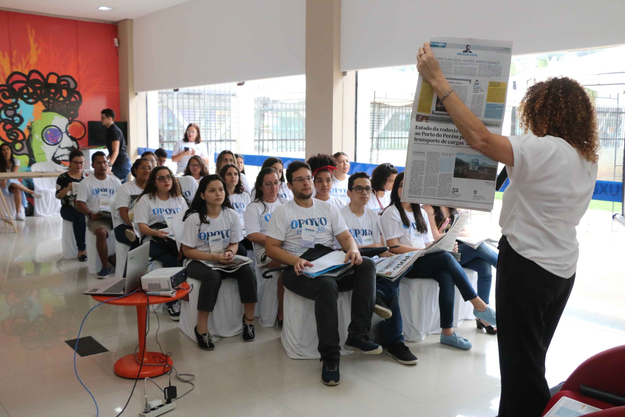 Curso Novos Talentos para estudantes de Jornalismo é realizado no O POVO. Ao centro, o coordenador Plínio Bortolotti e a jornalista Daniela Nogueira