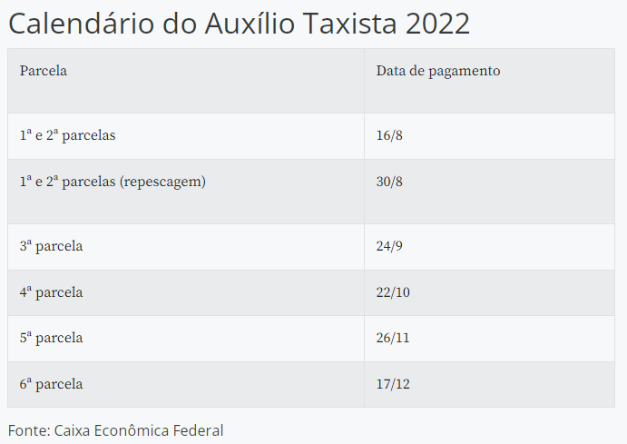 sábado, 24, foram pagos 341 mil benefícios a transportadores autônomos de carga e 297 mil a taxistas, totalizando aportes de R$ 1 bilhão e R$ 877 milhões, respectivamente.