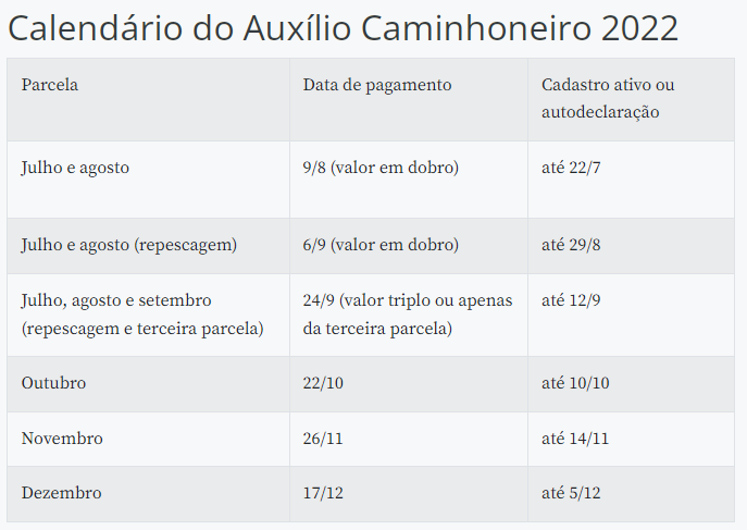 para solicitar os auxílios Caminhoneiro e Taxista. De acordo com o secretário de Previdência do Ministério do Trabalho e Previdência, André Veras, no último