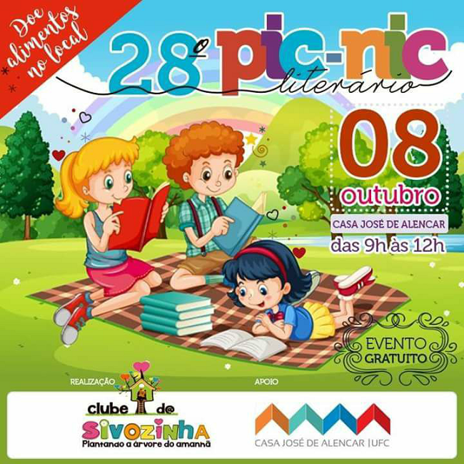 A Casa de José de Alencar, equipamento cultural da Universidade Federal do Ceará (UFC), e o Clube da Sivozinha promovem, em alusão ao Dia das Crianças, a 28ª edição do Pic-Nic Literário, evento infantil com brincadeiras, música e contação de histórias. A programação especial para as crianças será no próximo domingo, 8.