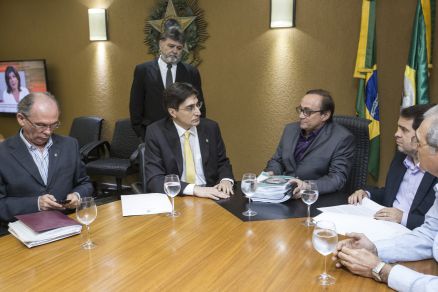 Titular da Seplag, Hugo Figueiredo (centro) entrega na Assembleia proposta com novo orçamento.