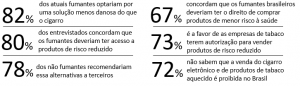 Quantos, dos quase 20 milhões de adultos fumantes brasileiros, trocariam o cigarro convencional por uma opção potencialmente menos prejudicial? Quantos dos cerca de 88 milhões de não fumantes impactados pela convivência com fumantes indicariam aos seus parentes e amigos uma alternativa menos nociva à saúde deles e de terceiros? As respostas, surpreendentes, a estas questões foram obtidas pelo Instituto de Pesquisas Datafolha: 82% dos atuais fumantes optariam por uma solução menos danosa do que o cigarro, enquanto que 78% dos não fumantes recomendariam tais alternativas a terceiros.
