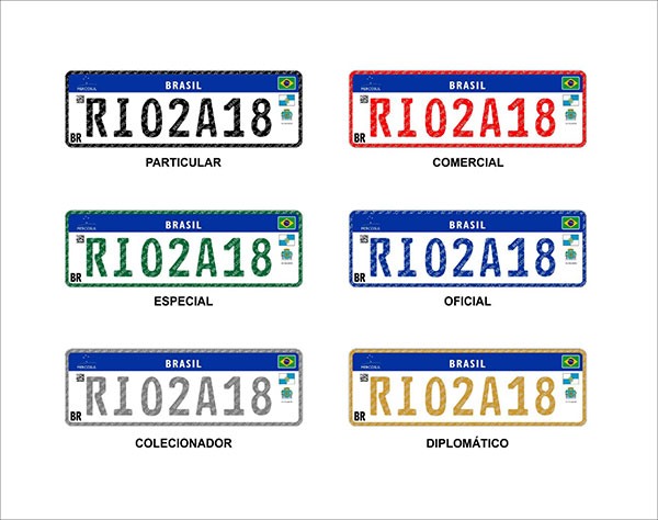 A diferenciação das placas conforme o uso do veículo será feita por meio das cores das molduras e dos caracteres. Veículos particulares serão pretos. Já aqueles destinados a fins comerciais (aluguel ou aprendizagem) terão moldura e caracteres em vermelho. Veículos diplomáticos seguirão a cor laranja; carros oficiais e de representação receberão a cor azul; veículos especiais (experiência, fabricantes de veículos, peças e implementos), a cor verde, e os carros de colecionadores terão a cor prata.