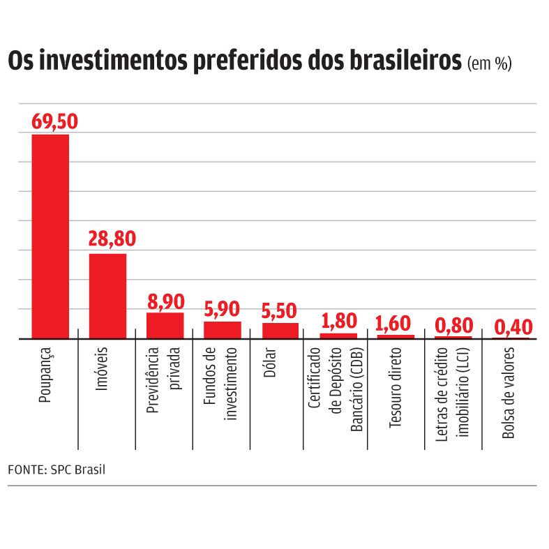 Pesquisa do SPC Brasil e Meu Bolso Feliz divulgada mostra que a poupança é o investimento preferido dos brasileiros (69,5%). Segundo a pesquisa a maior motivação por trás do investimento na caderneta é a busca pela estabilidade, de modo a evitar ao máximo os riscos envolvidos.