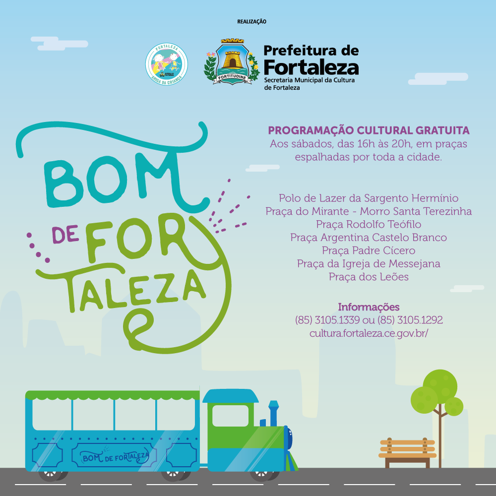 O Projeto Bom de Fortaleza, que vai oferecer programação cultural gratuita em praças espalhadas em toda a Cidade, será lançado neste sábado, 16 de setembro. Os eventos serão realizados aos sábados, nas sete Regionais, possibilitando a utilização das praças públicas e seu entorno como espaços para manifestações artísticas, culturais e de diferentes segmentos relacionados à economia criativa.