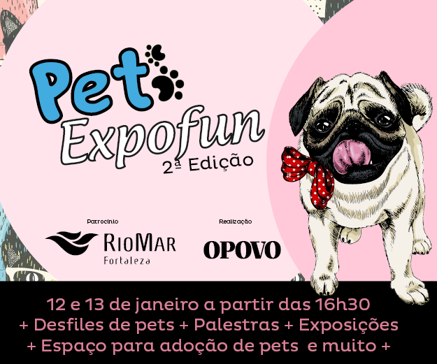 A segunda edição da feira Pet Expofun será realizada nos dias 12 e 13 de janeiro, no shopping RioMar Fortaleza, no Papicu, das 16h30min às 22 horas. A entrada é gratuita e a programação inclui arrecadação de ração e adoção de animais, além de desfiles, palestras, estandes com ofertas de produtos e serviços e área destinada afood trucks.