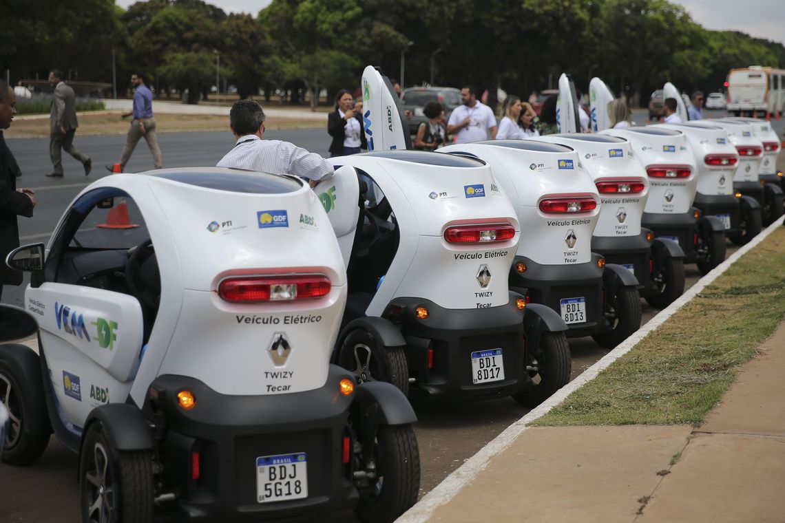 O Governo do Distrito Federal (GDF) lança projeto piloto que usa carros elétricos compartilhados no transporte dos servidores públicos. O projeto Vem DF conta inicialmente com uma frota de 16 veículos elétricos modelo Twizy, da marca Renault para que servidores cadastrados possam se deslocar por rotas previstas no software do automóvel.