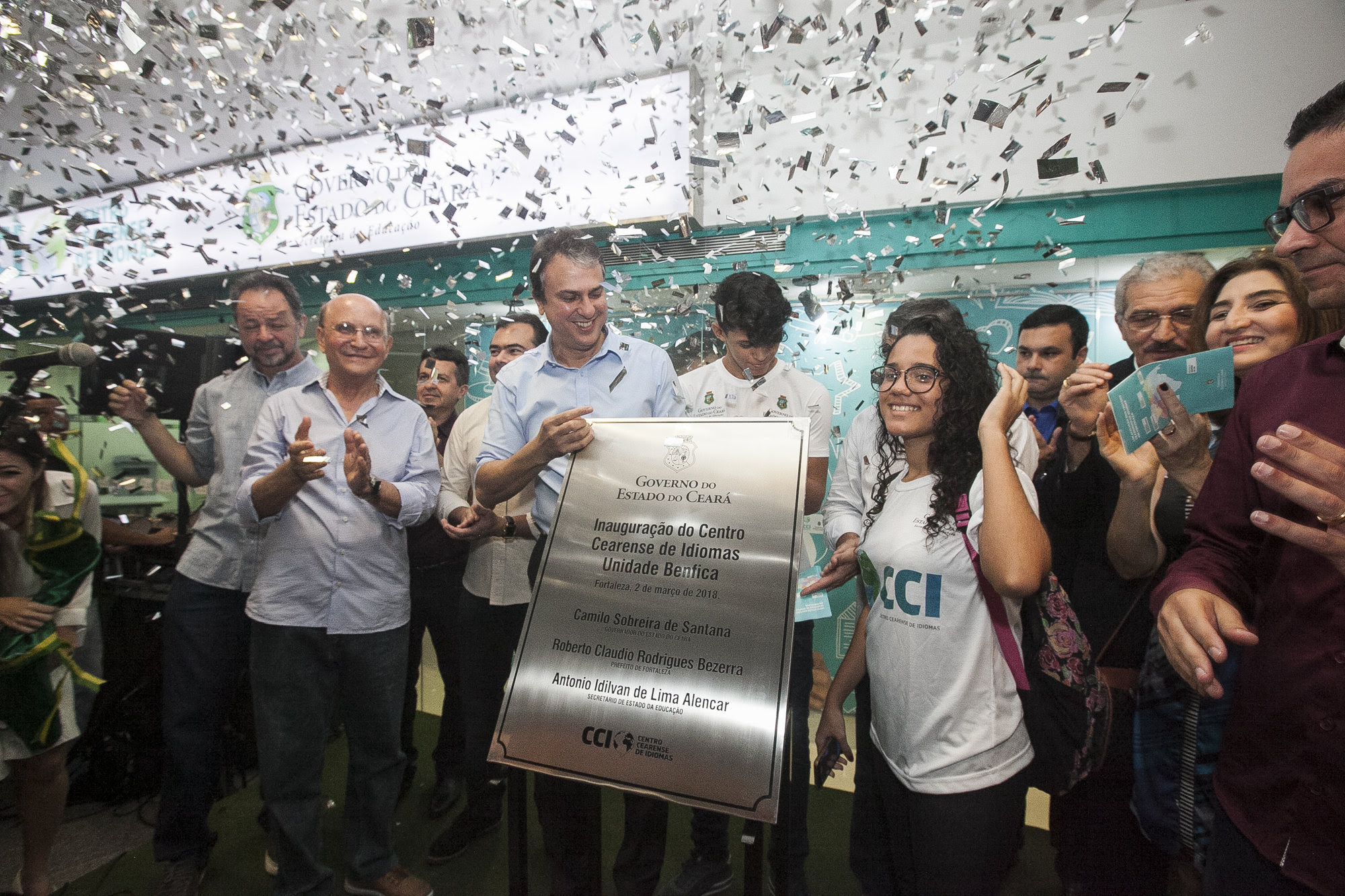 O Governo do Ceará inaugurou o primeiro Centro Cearense de Idiomas (CCI), localizado no shopping Benfica, em Fortaleza. A iniciativa vai ofertar a alunos matriculados na rede pública estadual o ensino gratuito de inglês e espanhol. Ao todo, 11 CCIs serão entregues pelo Executivo em todo o Estado até abril. A abertura do primeiro centro contou com a presença do governador Camilo Santana, acompanhado do secretário da Educação Idilvan Alencar, educadores, estudantes e lideranças políticas.