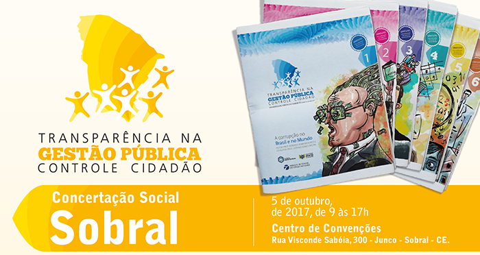 Sobral vai sediar o quinto e último seminário sobre Transparência na Gestão Pública - Controle Cidadão, pelo interior do Estado. O evento será próxima quinta-feira, dia 5 de outubro, das 9 às 17 horas, no Centro de Convenções Inácio Gomes Parente (Rua Visconde de Saboia, nº 300, Bairro Junco), e vai reunir reunir gestores, sociedade, estudantes e líderes de associações, envolvendo 48 municípios.