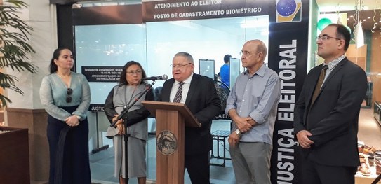O Tribunal Regional Eleitoral do Ceará reabriu, na manhã desta quarta-feira, 27, o posto de atendimento do Shopping Benfica. O presidente do TRE, desembargador Haroldo Correia de Oliveira Máximo, comandou a solenidade de reabertura e enfatizou o sucesso da parceria entre a Justiça Eleitoral e shopping, no ciclo anteriores. "O posto do Benfica teve a maior média de atendimentos por kit biométrico, entre os postos: 73 atendimentos/dia por guichê, no período que antecedeu o fechamento do cadastro eleitoral, em maio de 2018. Agora, com a biometria obrigatória expectativa do TRE é que esse movimento seja ainda maior", declarou o des. Haroldo Máximo.