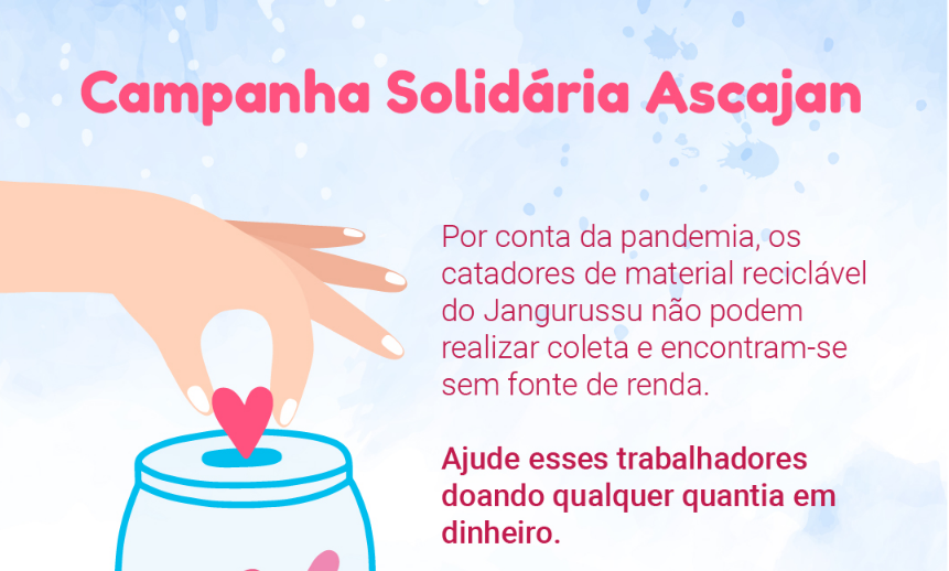 O Núcleo de Gestão Socioambiental (Ecosétima), do Tribunal Regional do Trabalho da 7ª Região (TRT-7/CE), deu início à campanha solidária no intuito de arrecadar recursos para o sustento das famílias de membros da Associação dos Catadores e Catadoras do Jangurussu (Ascajan). O grupo está sem sua fonte de renda, pois o galpão de triagem permanece fechado para que os associados fiquem em casa cumprindo o lockdown.