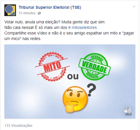 Nomeada de "Mitos Eleitorais", o objetivo da campanha é desmistificar alguns assuntos e elucidar o eleitor brasileiro. O projeto tem nove vídeos, de curta duração, que serão veiculados neste mês e em julho no Facebook e no Twitter do Tribunal.Os eleitores podem deixar suas dúvidas nos comentários das postagens que são direcionadas à campanha e elas serão respondidas de acordo com os temas.