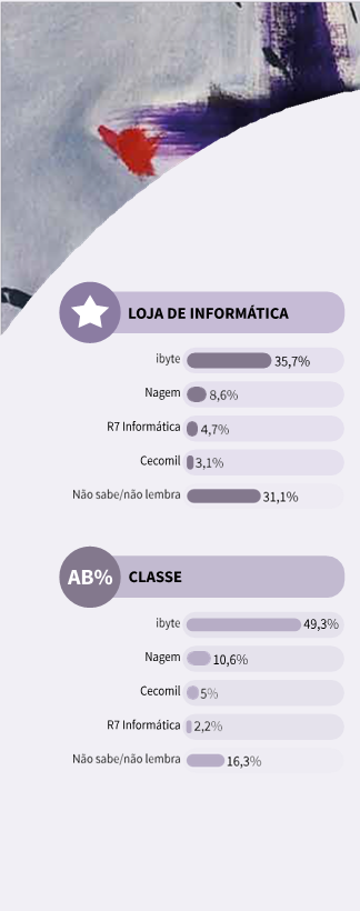 Nas faixas A e B, a ibyte tem um praticamente metade das respostas, 49,3%, um desempenho avassalador, portanto, Nagem (10,6%) e Ceco- mil (5%) também foram citadas nesse recorte.
