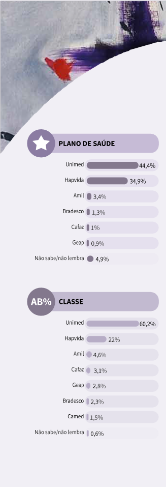 Com índices mais baixos aparecem Amil (3,4%), Bradesco (1,3%), Cafaz (1%), Geap (0,9%), entre outras. O índice dos que não souberam responder é o mais baixo já registrado na história da pesquisa, 4,9%, ante 5,4% do ano passado.